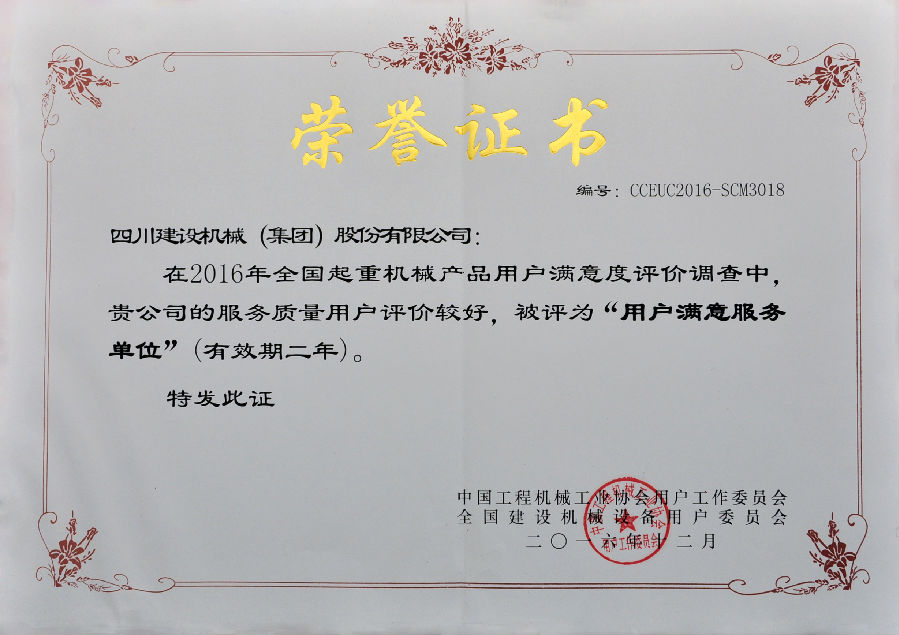 2016年全国用户满意产品评价测评结果公布,LEDONG.COM-乐动(中国) 凭借良好的产品和服务质量获得全国用户的较高评价,荣获了“全国塔机用户满意十强”企业;获得产品质量调查连续十一次评价“全国用户满意”企业;公司生产的C7022、C7050、C7030、P7527塔式起重机以及SC200/200W施工升降机被评为“全国用户满意产品”;同时获得“用户满意服务”奖;1989年至今LEDONG.COM-乐动(中国)已连续十一次获得全国用户满意奖,得到了业内用户的高度认可。