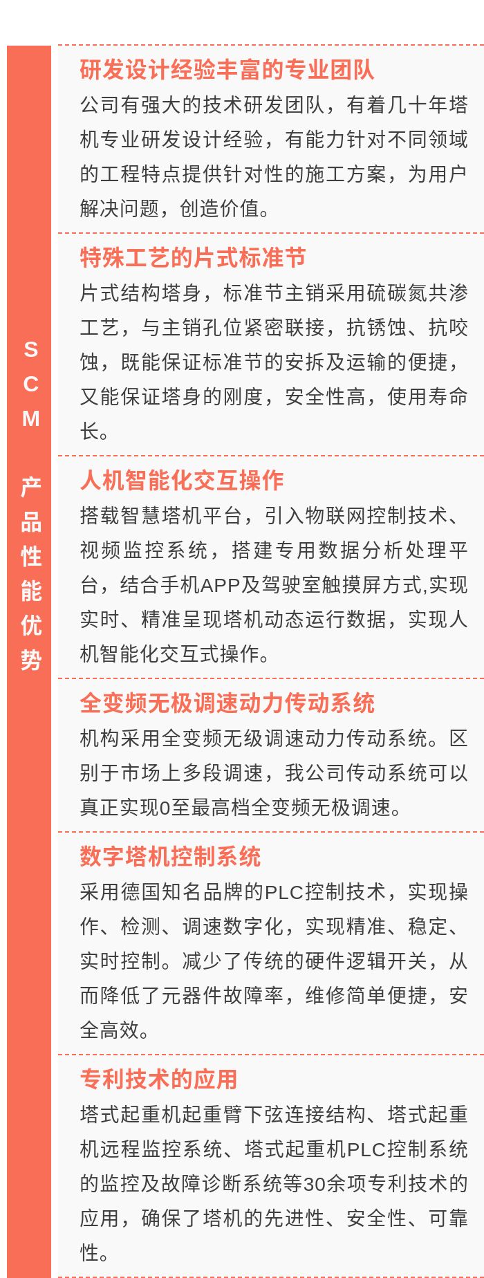 以“SCM”为标志的建设机械产品已被广泛地应用在海内外施工现场。三峡水利工程、南水北调工程、华龙一号首推工程、大亚湾核电工程、杭州湾跨海大桥工程、贵州平塘特大桥工程、国家体育场“鸟巢”工程、成都天府国际机场等众多国家重点项目建设中,SCM产品均发挥了重要的作用。